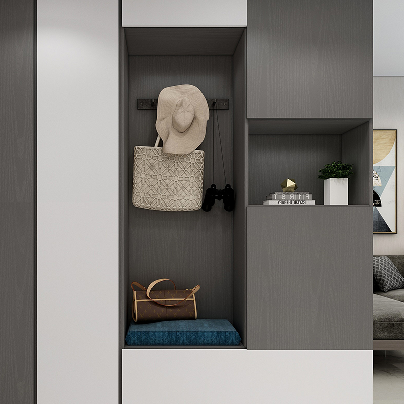 整體定制衣柜 蒙斯陽光·黑木卡其+玉石白玄關柜