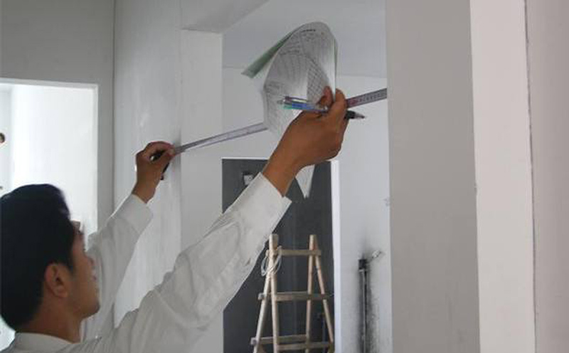 門扇的高度的測量:門扇的高度取上下垂直對門框的內距來進行測量,根據安裝的門的寬度選取其中的3個點來進行測量,其中測量出的最小值做為門框外延的寬度標準。